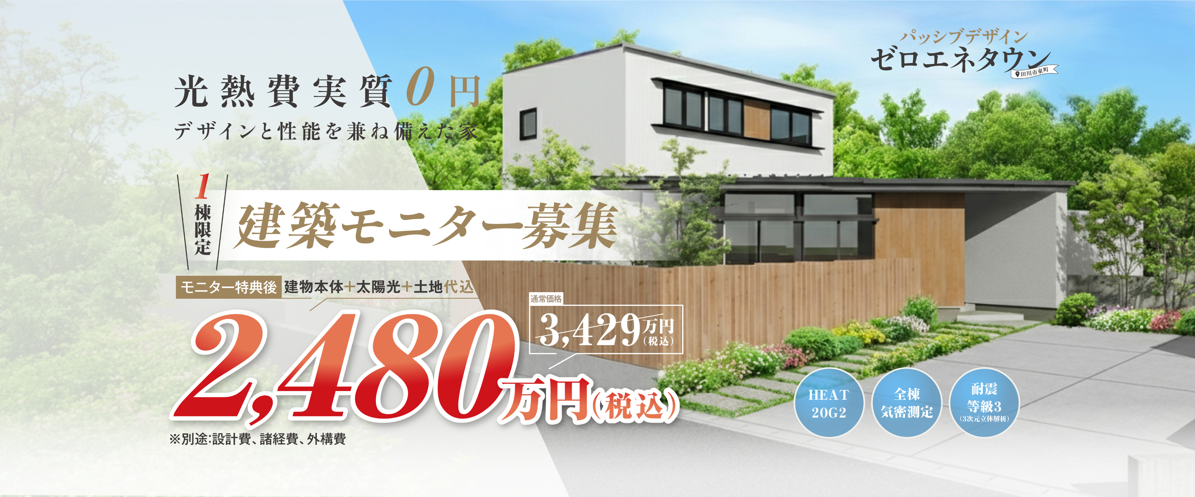 ※設計費、諸経費、外構費は別途 ※補助金適用後 ※モニター適用諸条件あり ※プラン変更や仕様変更となった場合は価格増減あり